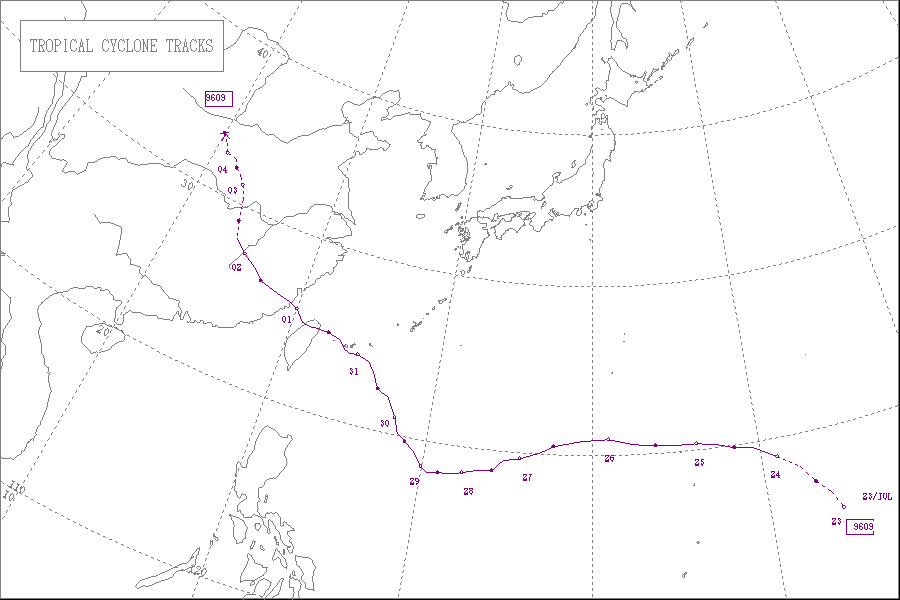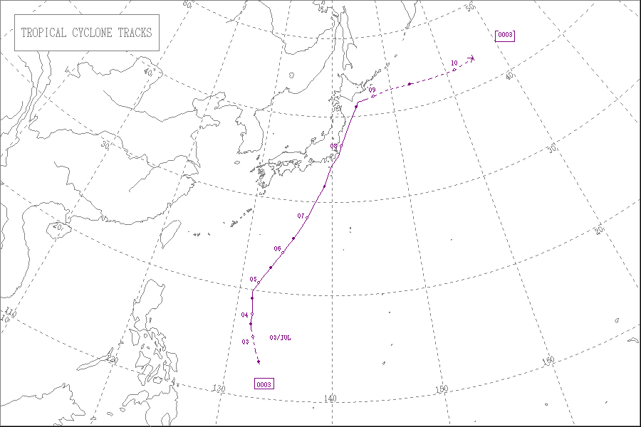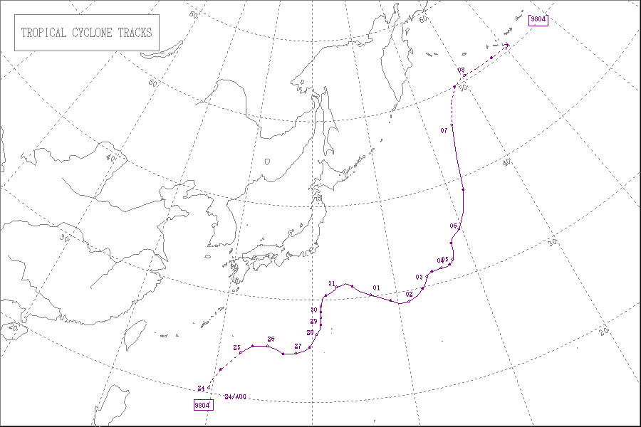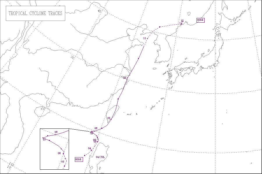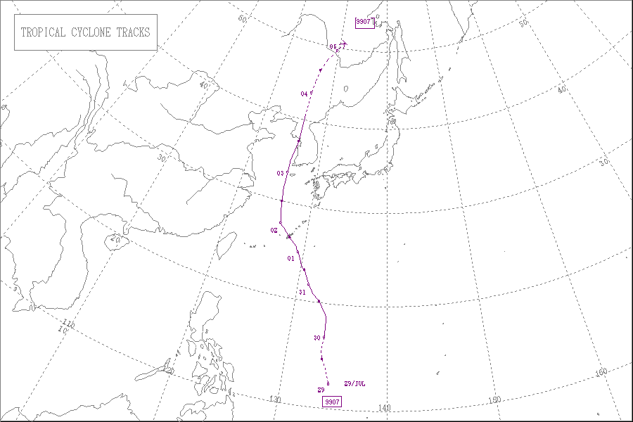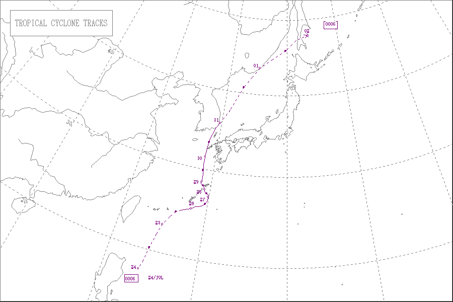 この台風は7月26日に沖縄の東の海上に達し、28日に奄美大島と徳之島の間を通過し、30日に九州の西の海上を通って朝鮮半島東岸で熱帯低気圧になりました。
