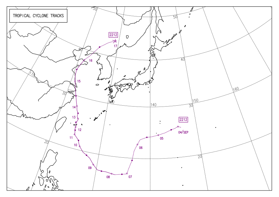 この台風は沖縄周辺で発生し、関東の南に接近後、温帯低気圧に変わりました。